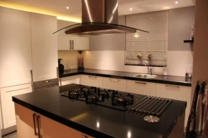 In deze keuken is gekozen om een koof te maken met directe en indirecte ledverlichting.